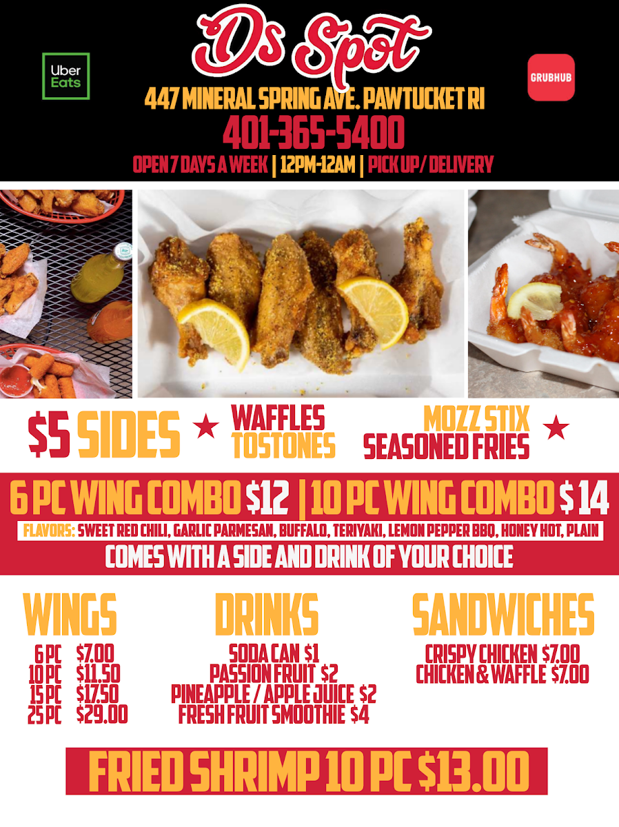 Welcome to D's Wings, a hidden gem nestled at 447 Mineral Spring Ave in Pawtucket, Rhode Island. Known for its savory selection of wings and comforting staples, this spot is dedicated to serving up mouthwatering meals that leave a lasting impression. Whether you're craving crispy wings or juicy chicken nuggets, D's Wings has something to satisfy every palate.